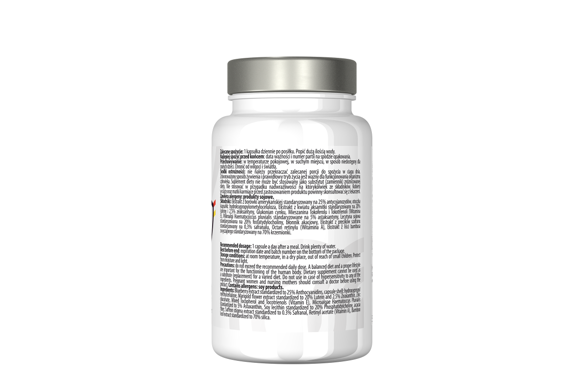 - Przyczynia się do poprawy ostrości wzroku (ekstrakt z aksamitki)