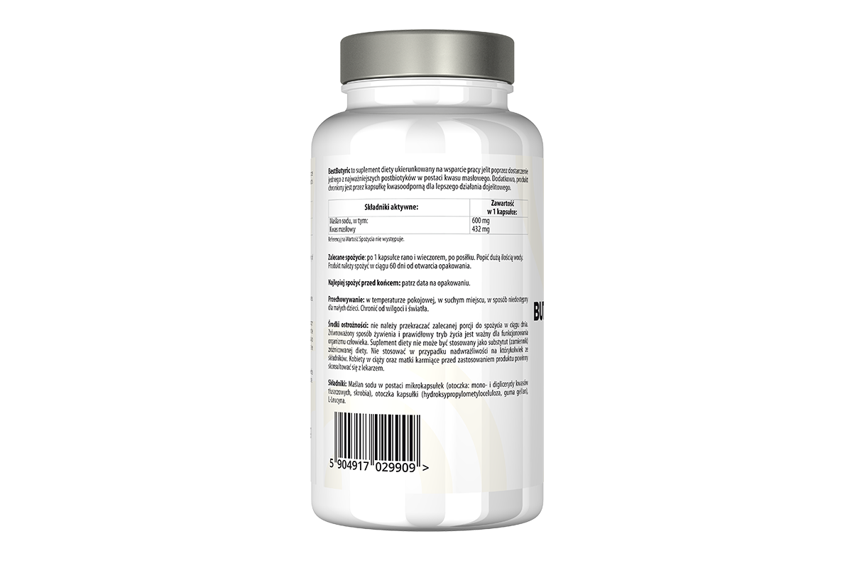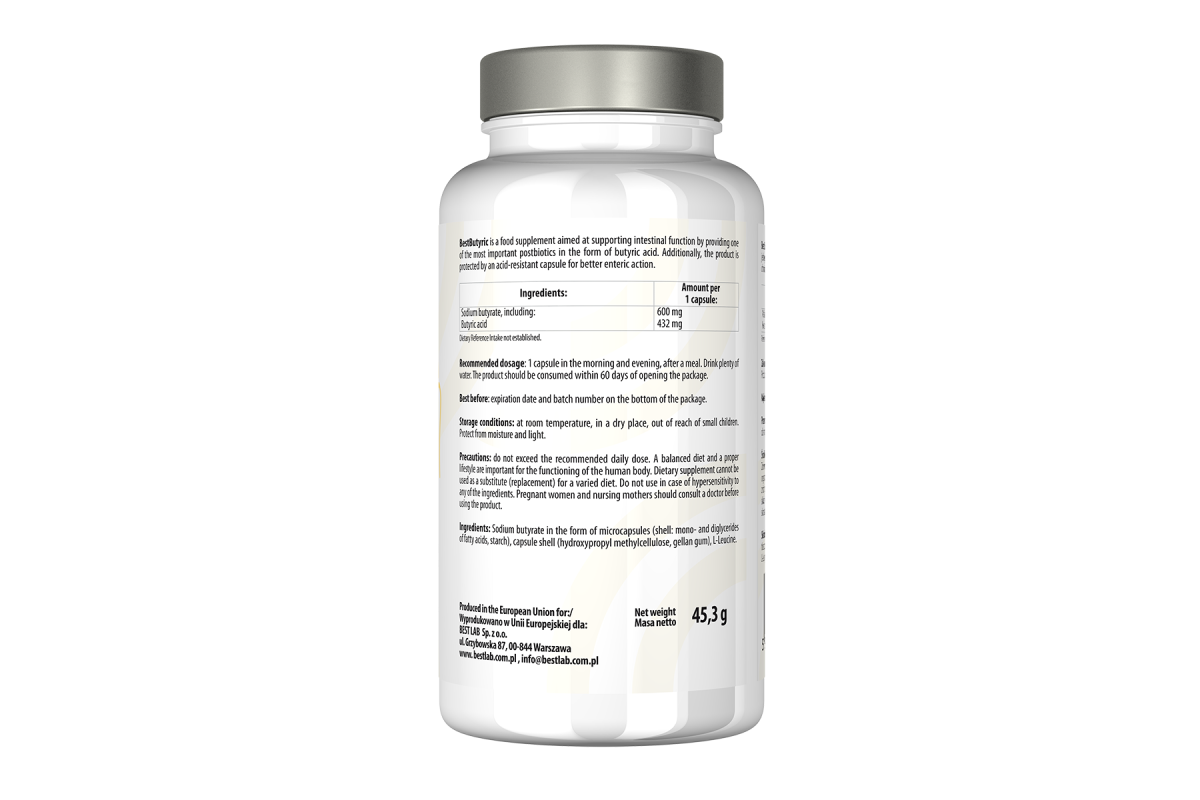BestButyric to nowoczesny suplement diety oparty na maślanie sodu – postbiotyku z grupy krótkołańcuchowych kwasów tłuszczowych (SCFA).