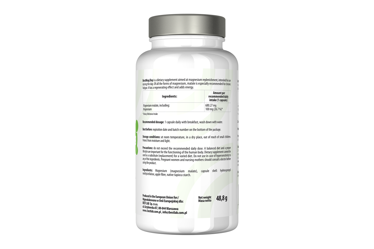 BestMag Day to suplement diety, który wspiera prawidłowe funkcjonowanie organizmu poprzez dostarczenie jabłczanu magnezu.
