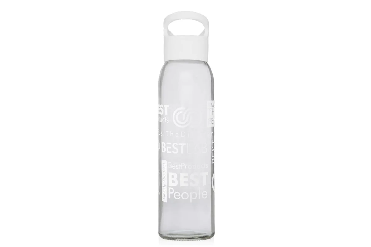 Szklana butelka z zakrętką PP z uchwytem do zawieszenia.