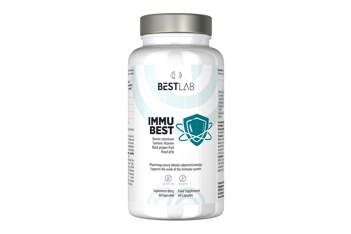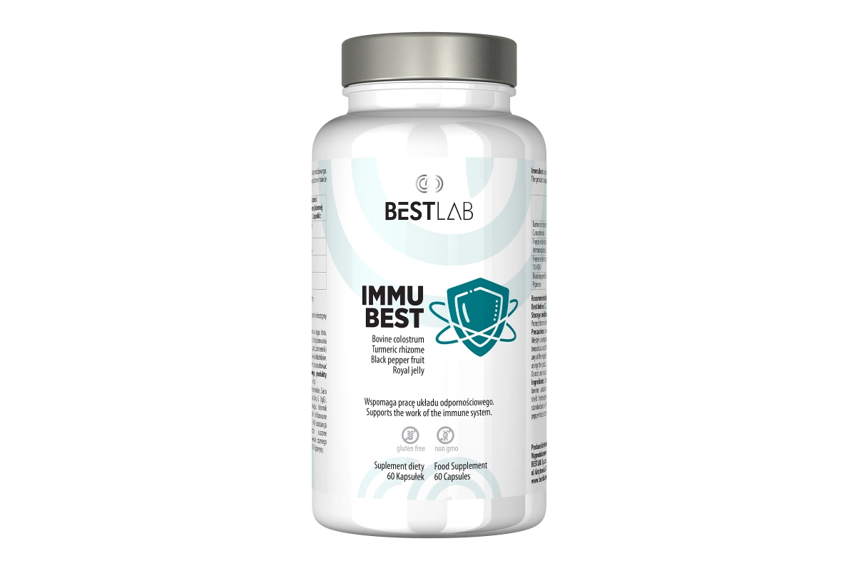 “Sprawnie działający układ odpornościowy zależy od wielu czynników, w tym zdrowych połączeń jelitowych. Zachodni styl życia, stres i alkohol szkodzą jelitom, co może wyjaśniać wzrost schorzeń autoimmunologicznych i alergii. Colostrum, naturalny składnik produkowany przez matki ssaków, wspiera florę jelitową, szczególnie Bifidobacterium, i jest korzystne dla osób w każdym wieku, w sporcie i podczas infekcji. Kurkuma, znana z poprawy metabolizmu i działania przeciwzapalnego, jest ceniona za kurkuminoidy o właściwościach terapeutycznych. Produkty pszczele, takie jak mleczko pszczele, są również znane ze swoich prozdrowotnych właściwości. Połączenie tych składników w ImmuBest stanowi doskonałe wsparcie dla Twojego układu odpornościowego.“